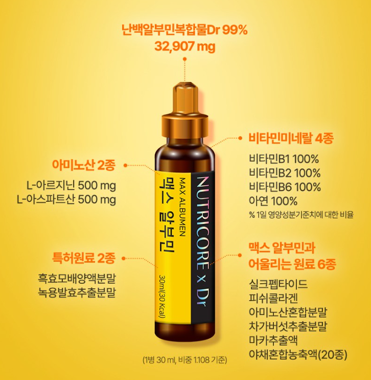 | 주요 성분 | 고순도 알부민, 아르기닌, 타우린, 비타민B군 |