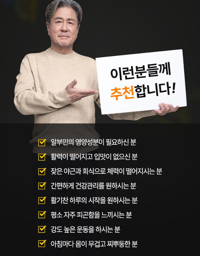 | 추천 대상 | 체력 저하, 피로 누적, 고단백 보충 필요자 |